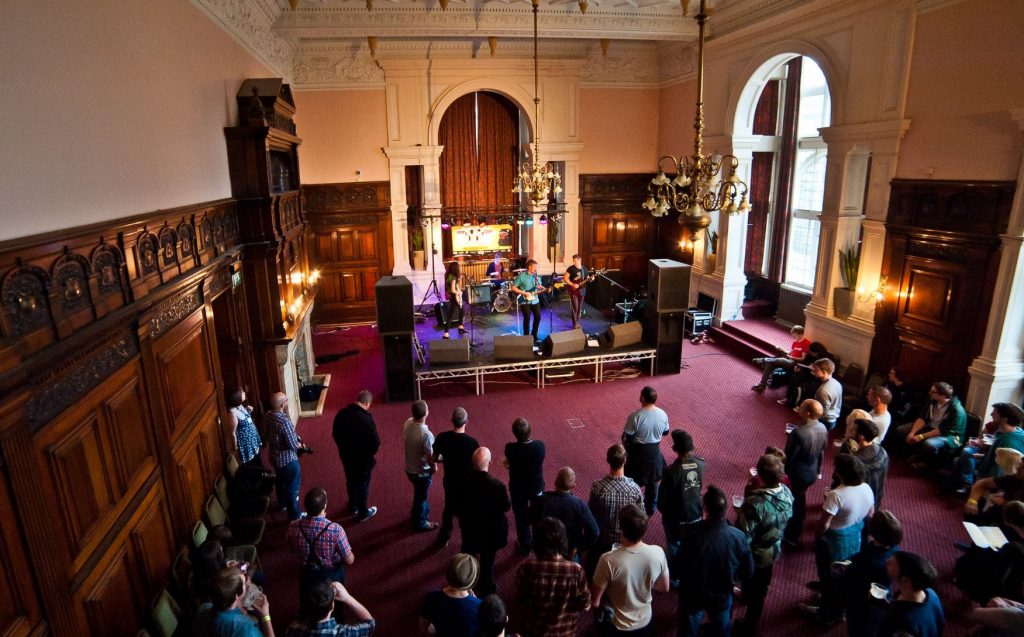 Beautiful Unitarian chapel. Fully pewed with a huge organ. If you ask nicely between bands the staff might show you the catacombs underneath.
